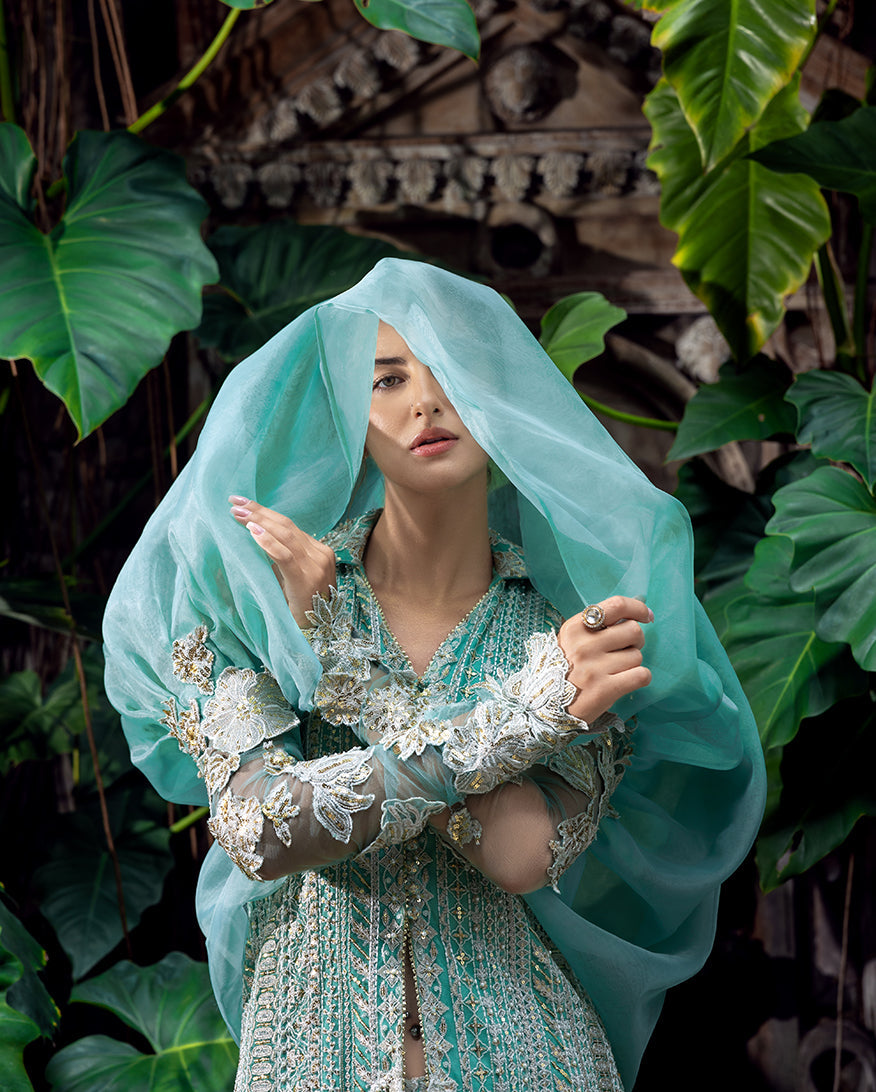 Given our Pakistani cultural background, we understand the significance of modesty. Therefore, we may make adjustments to certain design elements for modesty reasons. Examples of modifications include transforming low backs into traditionally styled regular backs, replacing drop shoulders with normal shoulders, concealing exposed stomachs, and attaching sleeves to sleeveless dresses.