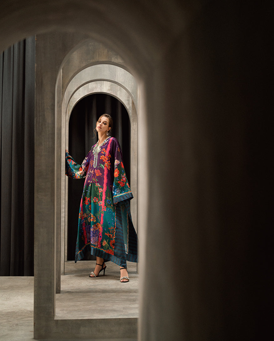 Elevate your wardrobe with our exquisite Sharmose Silk Kaftans, designed for effortless grace and timeless charm. Each piece showcases striking prints and features a luxuriously hand-embellished neckline, making it the perfect fusion of elegance and comfort.
