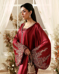 Designed to leave a lasting impression, Maelys intertwines regal craftsmanship with poised tailoring. Cut from a vibrant wine red Raw Silk, the kaftan features bedazzling sequins, pitta and resham work fused together in intricate patterns. With its statement silhouette and eye-catching details, this piece is a must have for your festive wardrobe.