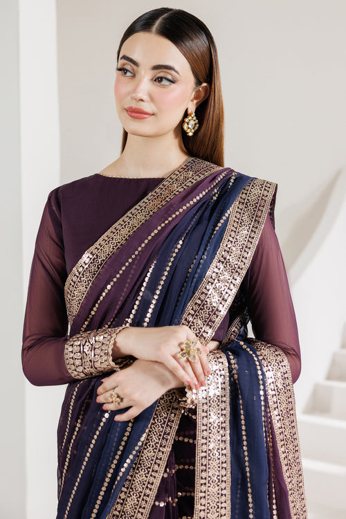 Digital Printed Embroidered Chiffon Saree Fall (5.50 Yards)