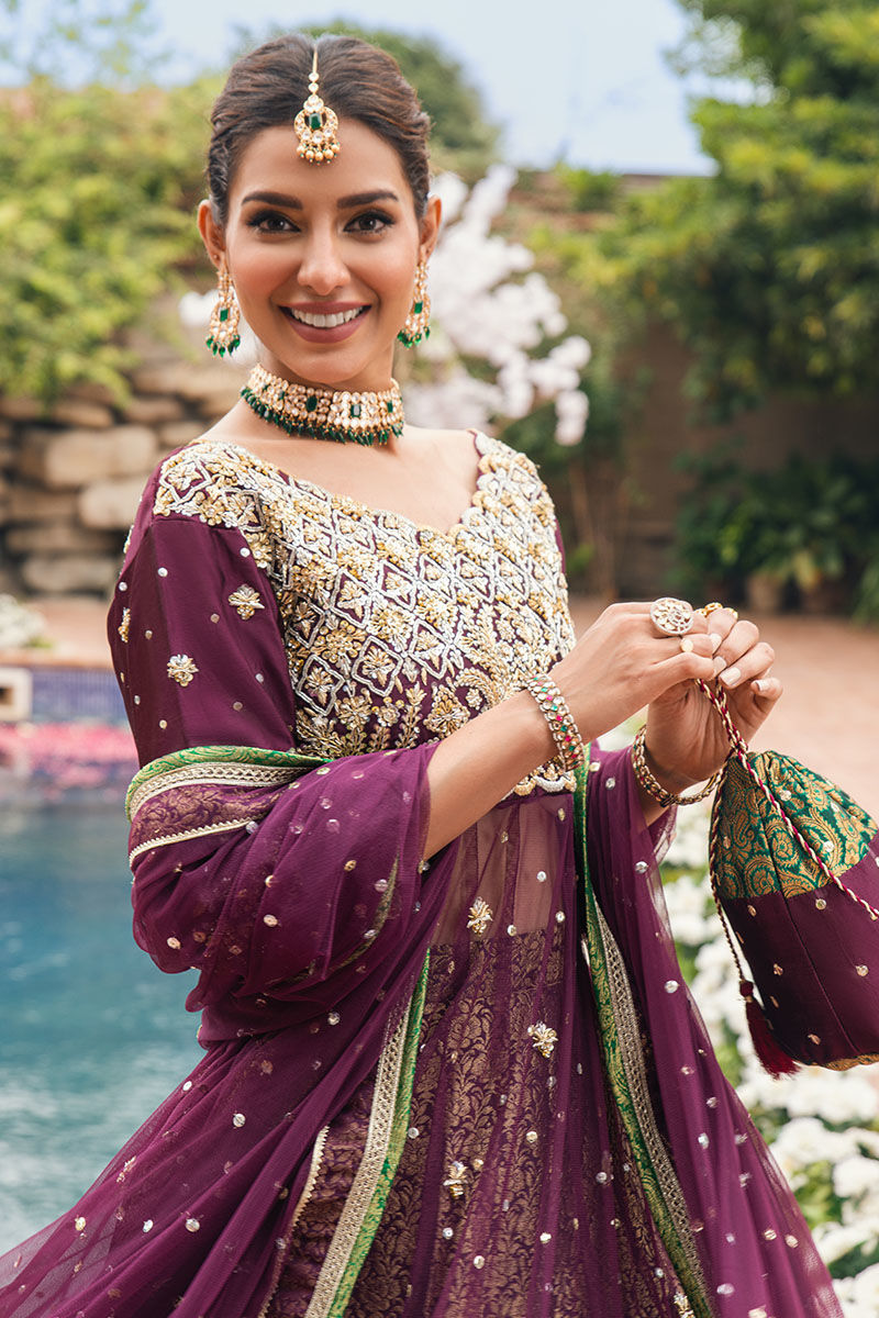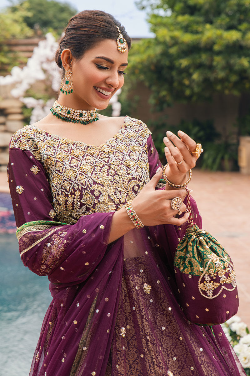 The Kalidaar outfit exudes elegance with its heavily embellished body featuring intricate kora and dabka, reflecting the craftsmanship of our rich heritage. Complemented by a jamawar lenghna and a stunning dupatta adorned with, chan, and sequins on delicate net fabric, the ensemble beautifully captures the essence of Naira’s timeless beauty. Let your style narrate an enchanting story that seamlessly combines tradition and contemporary allure.