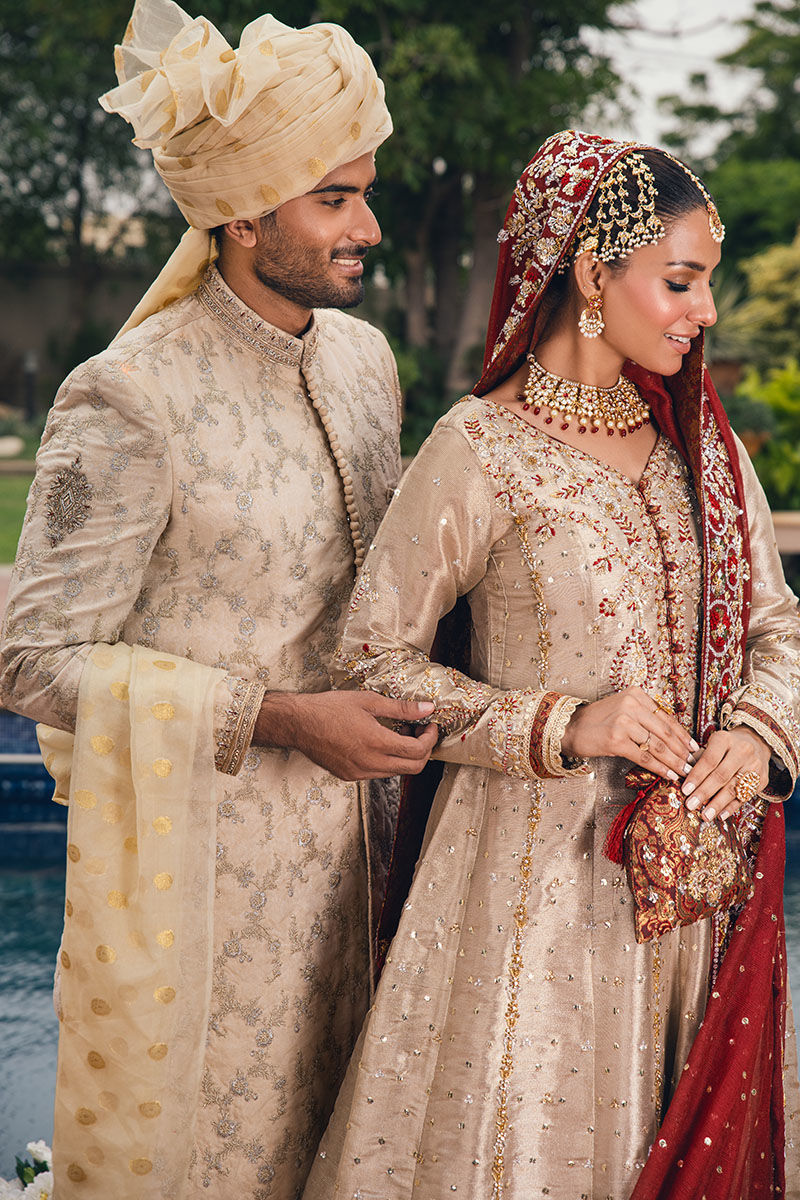 Given our Pakistani cultural background, we understand the significance of modesty. Therefore, we may make adjustments to certain design elements for modesty reasons. Examples of modifications include transforming low backs into traditionally styled regular backs, replacing drop shoulders with normal shoulders, concealing exposed stomachs, and attaching sleeves to sleeveless dresses.