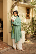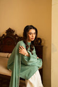 Step into effortless sophistication with this stunning green raw silk shirt paired with off-white trousers, crafted for the modern ethnic wardrobe. The shirt is adorned with delicate pearls and adda work, adding a touch of refined glamour, while the not-so-old-school cut-line neckline keeps the look fresh and contemporary.The off-white trousers feature subtle embroidery and cutwork, perfectly balancing elegance with style. Complete the ensemble with the optional chiffon dupatta for a flowing, graceful finish. Comfortable yet striking, this outfit is ideal for festive occasions, brunches, or chic ethnic gatherings