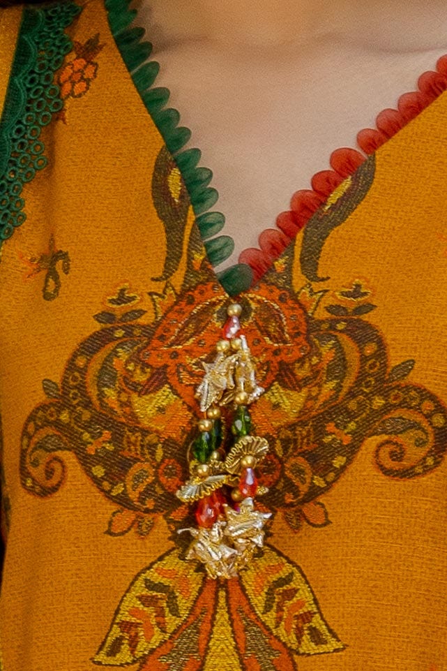 We at Khanum Jan are pleased to offer our customers a premium sewing service that prioritizes impeccable sewing styles and exceptional quality. Our team meticulously plans and sews dresses according to the brand shoots displayed on our website. However, it is important to note that brands often showcase certain design elements for illustrative purposes only, which may not be included in our dresses. Consequently, customers should anticipate minimal variations.