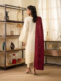 Our classic white-on-white monotone embroidered karandi shirt with a contrasting herringbone winter shawl - the shirt features intricately detailed fully composed embroidered patterns paired with loose fit sleeves.