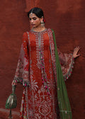 This refined ensemble is a sophisticated expression of contemporary elegance and traditional craftsmanship. The embroidered chiffon shirt is intricately detailed with delicate embroidery and enhanced with a beautifully finished border that adds structure and visual depth. The embroidered sleeves, complemented by finely crafted sleeve borders, elevate the design with a polished and graceful finish. Paired with a screen printed Korean raw silk sharara, the outfit offers a harmonious blend of texture and modern appeal. Completing the look is an embroidered chiffon dupatta, exquisitely adorned with embroidery and finished with four-sided embroidered borders, lending a luxurious and graceful drape. Perfect for festive occasions and formal gatherings, this ensemble reflects timeless style and artisanal excellence.
