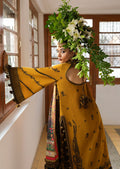 Golden allure meets classic charm in this mustard ensemble, a true embodiment of elegance and sophistication. The intricate embroidery on karandi fabric, paired with a digital printed wool shawl, creates a captivating look that will leave a lasting impression. From the embroidered dupatta with a four-sided border to the delicately crafted front and back panels,every detail is thoughtfully designed to enhance your natural beauty. The matching trouser and embroidered borders add a perfect finishing touch, making this outfit a timeless choice for those who appreciate artistry in every stitch.