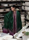 Softness meets drama in this stunning plum color three-piece winter ensemble. Featuring bold paisley embroidery on the shirt and sleeves embroided neck with beautiful Dori and tassels. It’s paired with beautifully scalloped embroidered trousers. The look is elevated by a vibrant green printed shawl, adding effortless chic. Perfect for making a statement at any gathering.