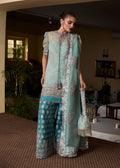 Turn heads and captivate with the rich elegance of this teal blue shalwar, crafted from pure raw silk for a luxurious look. Paired with an ice blue organza shirt, hand-embellished with intricate details and puff sleeves, this ensemble exudes elegance and sophistication. The unique fusion of opulence and modern design makes this outfit a showstopper. Stand out in any crowd with this timeless masterpiece – a perfect blend of class and charm.