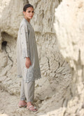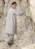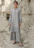 The Army Green Cotton Embroidered Co-ord Set from our Spring Pret '25 collection features an embroidered shirt with V neckline with a slit paired with embroidered trousers