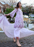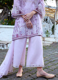Ranin in Lavender from our Spring Printkari '25 Collection. A printed cutwork embroidered cotton 3-piece outfit paired with dyed voile embroidered dupatta.