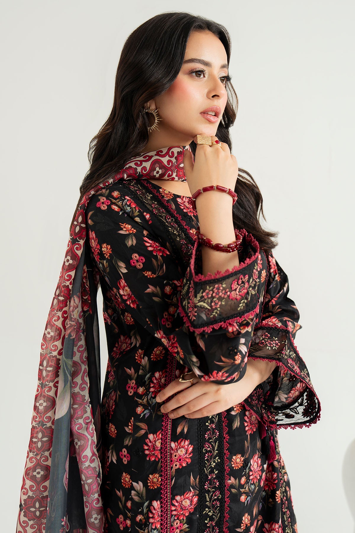 Embroidered & printed lawn shirt