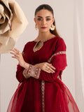With its rich deep red hue and timeless silhouette, Cherie from The Silk Chapter is a portrait of elegance wrapped in subtle detail. The raw silk shirt front features an embroidered neckline and hem border, while the plain sleeves are delicately finished with matching embroidery. The plain back and trousers create a clean foundation, letting the color and craft speak. An embroidered organza dupatta with a detailed pallu completes the look — soft, structured, and effortlessly refined.