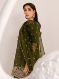 Earthy, elevated, and endlessly graceful — Matcha from The Silk Chapter is a tribute to nature’s depth and detail. The richly embroidered rawsilk front and sleeves bring texture and tradition to life, while the plain rawsilk back creates balance in form. Embroidered organza elements — including a detailed neckline patch and slit patti — add structure and refinement. Paired with a timeless farshi shalwar in plain rawsilk and a flowing organza dupatta featuring corner motifs, this ensemble is a masterclass in tonal sophistication.