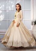 This elegant cotton masoori peshwaz is beautifully tailored with panel detailing enhanced by delicate Dori work, creating a striking silhouette. The body and borders are adorned with intricate resham and zari embroidery, sprinkled with sequins for a touch of sparkle. It is paired with a sheer organza dupatta featuring an exquisitely embroidered pallu, and complements a chori dar pajama in plush raw silk. Perfect for Eid celebrations and wedding festivities, this outfit exudes a timeless charm and sophisticated grace.