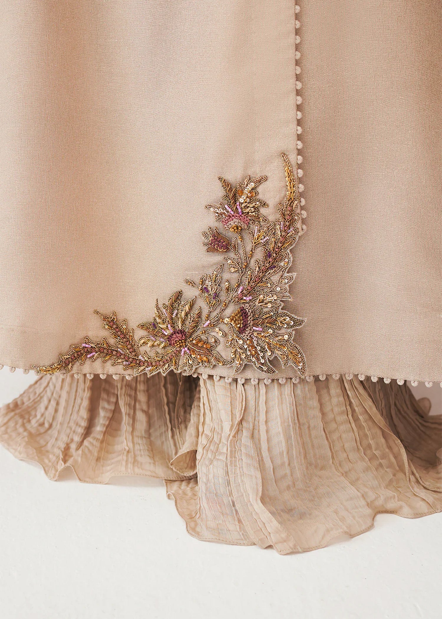 We at Khanum Jan are pleased to offer our customers a premium sewing service that prioritizes impeccable sewing styles and exceptional quality. Our team meticulously plans and sews dresses according to the brand shoots displayed on our website. However, it is important to note that brands often showcase certain design elements for illustrative purposes only, which may not be included in our dresses. Consequently, customers should anticipate minimal variations.