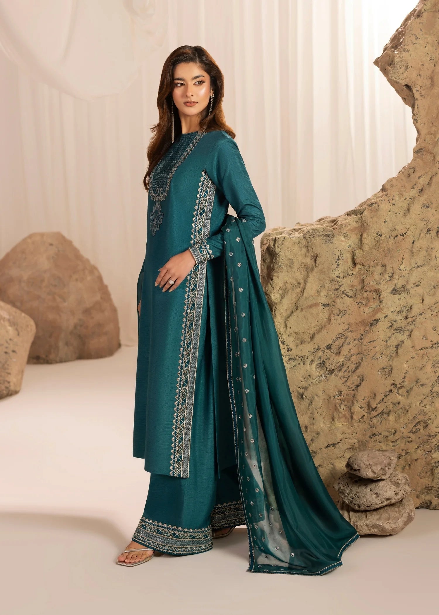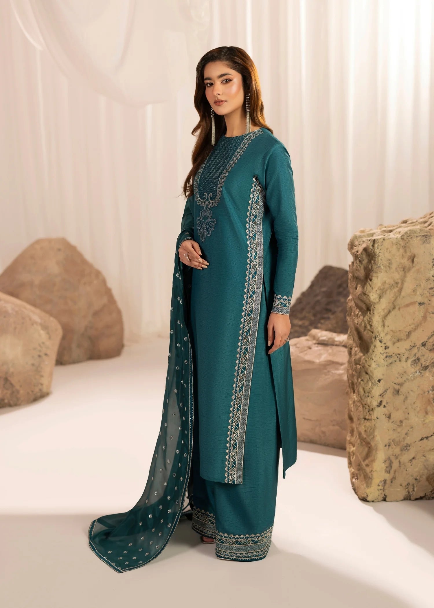 Medium silk embroidered dupatta.
