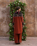 Embroidered Front Back Right Panel (Rust Khaddar) 2 Pieces
