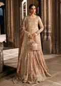 This mesmerizing pink ensemble is a perfect blend of elegance and glamour, featuring a shirt, gharara, and dupatta, all crafted from opulent tissue fabric. The gharara, with its graceful flare, is paired with a matching tissue dupatta, creating a cohesive and sophisticated look. Adorned with intricate patterns of shimmering pearls and sequins, this outfit captures light and attention with its dazzling effect. The delicate embellishments enhance the outfit’s refined beauty, making it an ideal choice for any occasion where you wish to make a stunning statement.