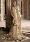 This luxurious gold ensemble features a shirt, gharara, and dupatta, all crafted from exquisite tissue fabric. The farshi tissue gharara is paired with a stunning Kathan organza mukesh dupatta, adding a touch of sophistication and grace. The outfit is adorned with intricate patterns of shimmering pearls and sequins, creating a captivating and mesmerizing effect. The combination of delicate embellishments and rich textures ensures this ensemble stands out as an epitome of elegance, perfect for making a dazzling impression at any special event.