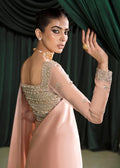 This pink saree in pure charmeuse with hand embellished organza blouse is the epitome of elegance and femininity. The blouse is made from sheer organza, which has been expertly hand-embellished with intricate details that catch the eye and capture the imagination. The embellishments add texture and depth to the blouse.The combination of the delicate organza and the sparkling embellishments creates a stunning contrast that is both unique and captivating.The saree is crafted from a luxurious pure charmeuse fabric, which drapes beautifully and adds a touch of glamour to any occasion. The subtle pink hue is soft and delicate, evoking a sense of romance and sophistication.