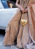 Selene exudes charm with its front-open shirt in soft tone organza, adorned with delicate tassel details and intricate sequence work. Paired seamlessly with jamawar sharara pants and a organza dupatta featuring rich heavy borders, this ensemble epitomizes elegance and allure