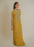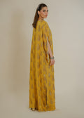 This screen-printed kaftan is adorned with intricate handwork, featuring zardozi, pearls, sequins, and Swarovski crystals. The flowing silhouette offers both comfort and style, making it perfect for any formal occasion. The soft yellow hue combined with the delicate embellishments adds a touch of grace and sophistication, ensuring you stand out effortlessly.