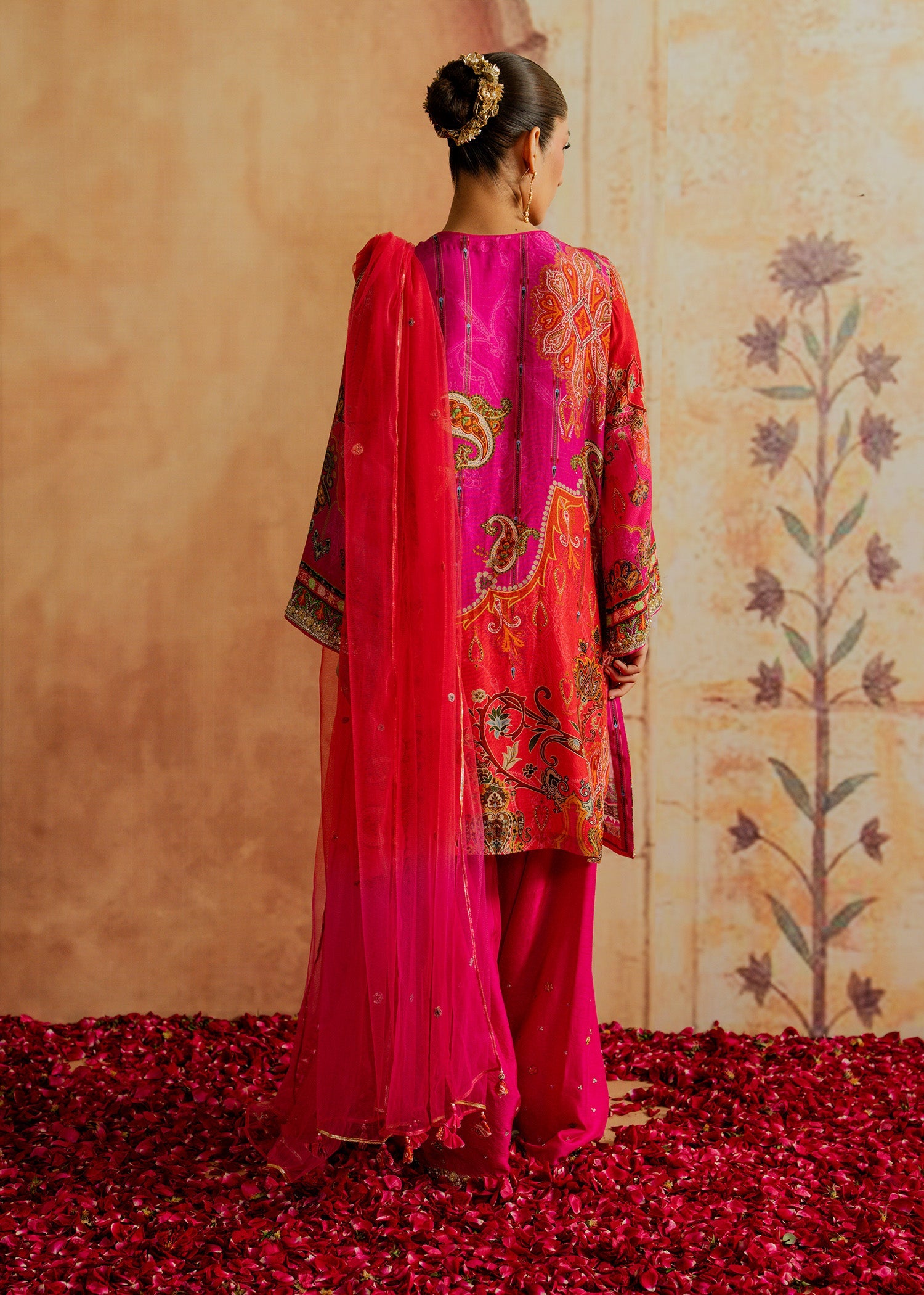 Delicate, feminine, and effortlessly chic, BLUSHÉ radiates in soft pink tones. Crafted in fluid Korean silk for both shirt and trouser (or shalwar), paired with a sheer net dupatta, this luxury ensemble balances comfort with refined elegance. Perfect for festive gatherings and elegant evenings, BLUSHÉ embodies timeless grace, subtle sophistication, and modern charm.