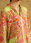 Presenting Jade Royale, a statement in rich green, crafted in lustrous Korean silk from shirt to trouser. The fluid silhouette drapes effortlessly, reflecting refined luxury with a modern edge.