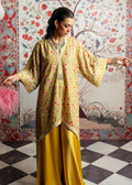 Sun Kissed from Echoes of Elara is a radiant ode to elegance in a luminous yellow hue. Crafted from airy chiffon, the long shirt drapes gracefully, adorned with intricate embroidery and meticulous handwork that adds a touch of refined artistry. Paired with lustrous satin trousers, this ensemble strikes the perfect balance between fluidity and structure.