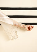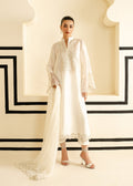 Ivory Grace from Nooreh — a vision of pure sophistication. This long tassle silk shirt in serene ivory, paired with tailored raw silk trousers, exudes understated luxury. Timeless and poised, it’s a look that whispers elegance with every step.