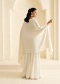 Pearl Reverie from Nooreh — a dreamlike expression of elegance in soft ivory. Crafted in lustrous satin, the kurti pairs beautifully with a fluid sharara, creating a silhouette that’s both graceful and contemporary. A statement in refined minimalism and quiet luxury.