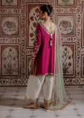 Add a burst of color to your collection with this stunning fuchsia kurti crafted from luxurious raw silk. The vibrant hue captures attention, while the elegant jamawar trousers provide a rich contrast that enhances the overall look. A delicate net dupatta completes the ensemble, offering a graceful drape that’s perfect for festive occasions.