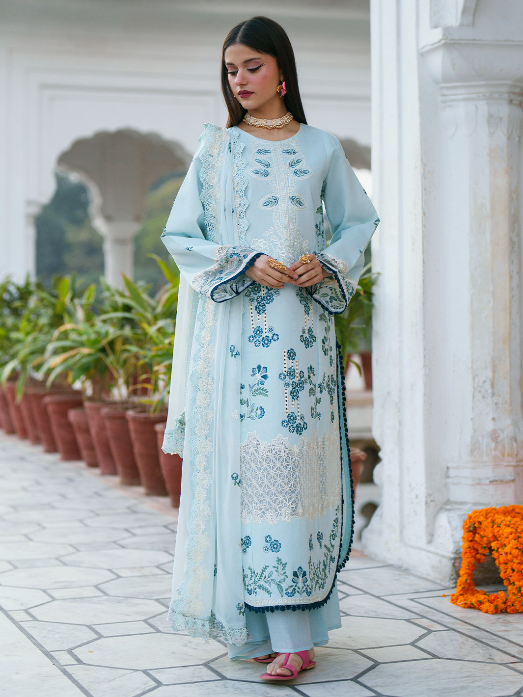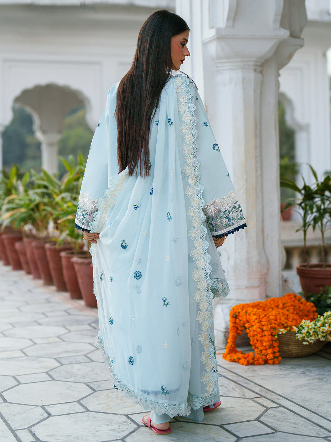 Given our Pakistani cultural background, we understand the significance of modesty. Therefore, we may make adjustments to certain design elements for modesty reasons. Examples of modifications include transforming low backs into traditionally styled regular backs, replacing drop shoulders with normal shoulders, concealing exposed stomachs, and attaching sleeves to sleeveless dresses.
