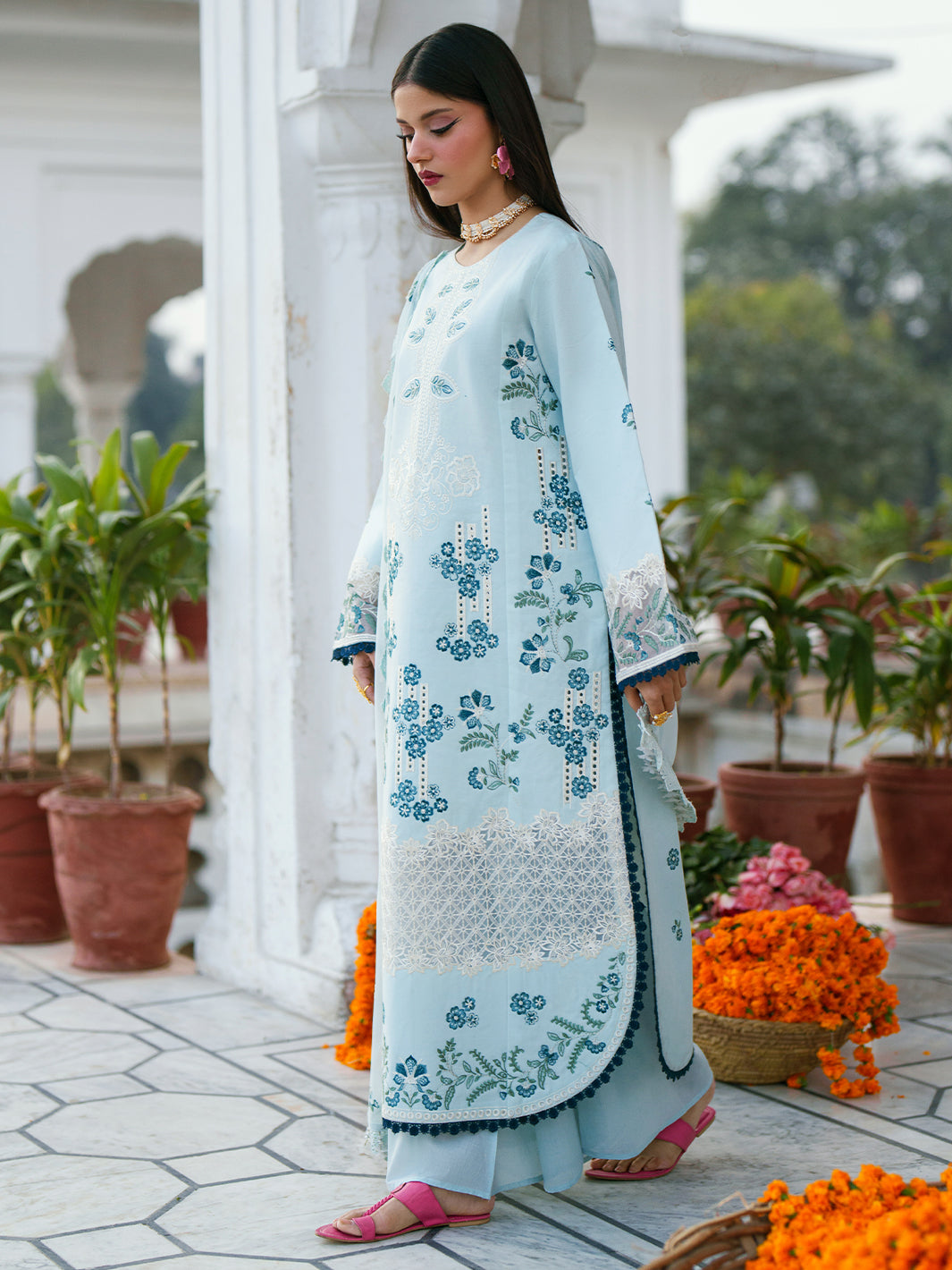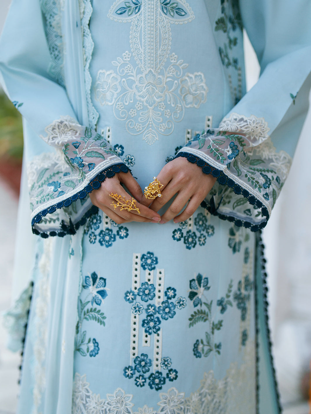 We at Khanum Jan are pleased to offer our customers a premium sewing service that prioritizes impeccable sewing styles and exceptional quality. Our team meticulously plans and sews dresses according to the brand shoots displayed on our website. However, it is important to note that brands often showcase certain design elements for illustrative purposes only, which may not be included in our dresses. Consequently, customers should anticipate minimal variations.