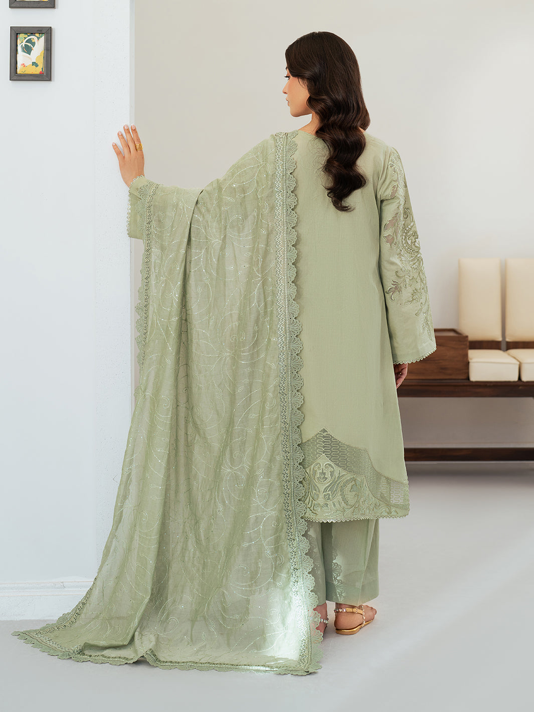 Given our Pakistani cultural background, we understand the significance of modesty. Therefore, we may make adjustments to certain design elements for modesty reasons. Examples of modifications include transforming low backs into traditionally styled regular backs, replacing drop shoulders with normal shoulders, concealing exposed stomachs, and attaching sleeves to sleeveless dresses.