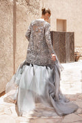 Decadence takes shape in our grey pure organza 'ALORA' Skirt Set. Intricately crafted and exquisitely detailed with floral handwork and embellishments of cut-dana, 3D florals, crystals, dabka naqshi, and pearls that ensure a truly unforgettable look.