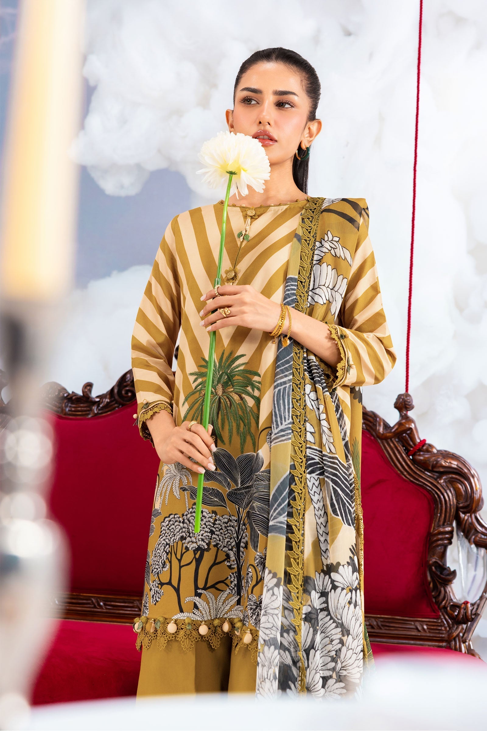 We at Khanum Jan are pleased to offer our customers a premium sewing service that prioritizes impeccable sewing styles and exceptional quality. Our team meticulously plans and sews dresses according to the brand shoots displayed on our website. However, it is important to note that brands often showcase certain design elements for illustrative purposes only, which may not be included in our dresses. Consequently, customers should anticipate minimal variations.