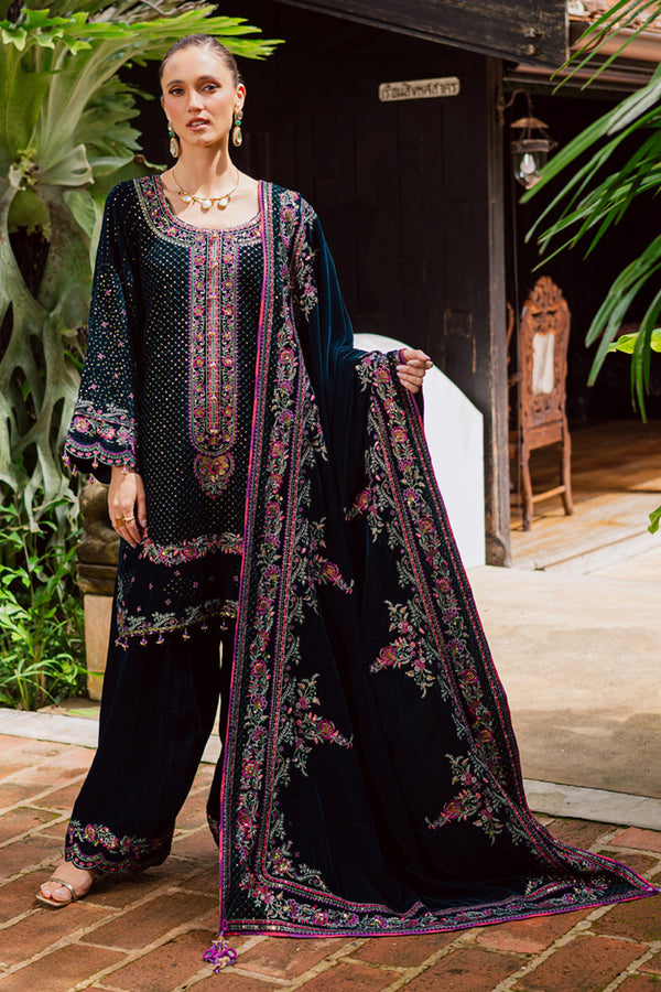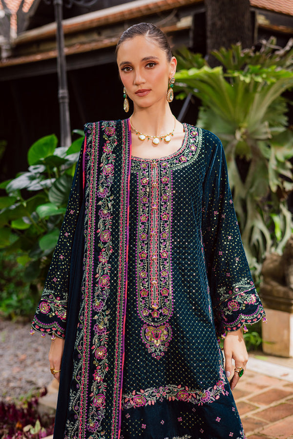 Dyed Velvet Sequins Embroidered Borders For Front Back And Sleeves
