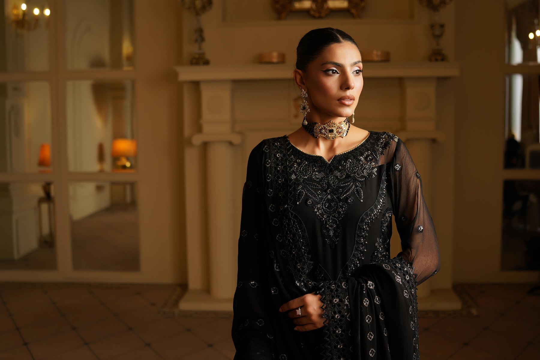 Given our Pakistani cultural background, we understand the significance of modesty. Therefore, we may make adjustments to certain design elements for modesty reasons. Examples of modifications include transforming low backs into traditionally styled regular backs, replacing drop shoulders with normal shoulders, concealing exposed stomachs, and attaching sleeves to sleeveless dresses.