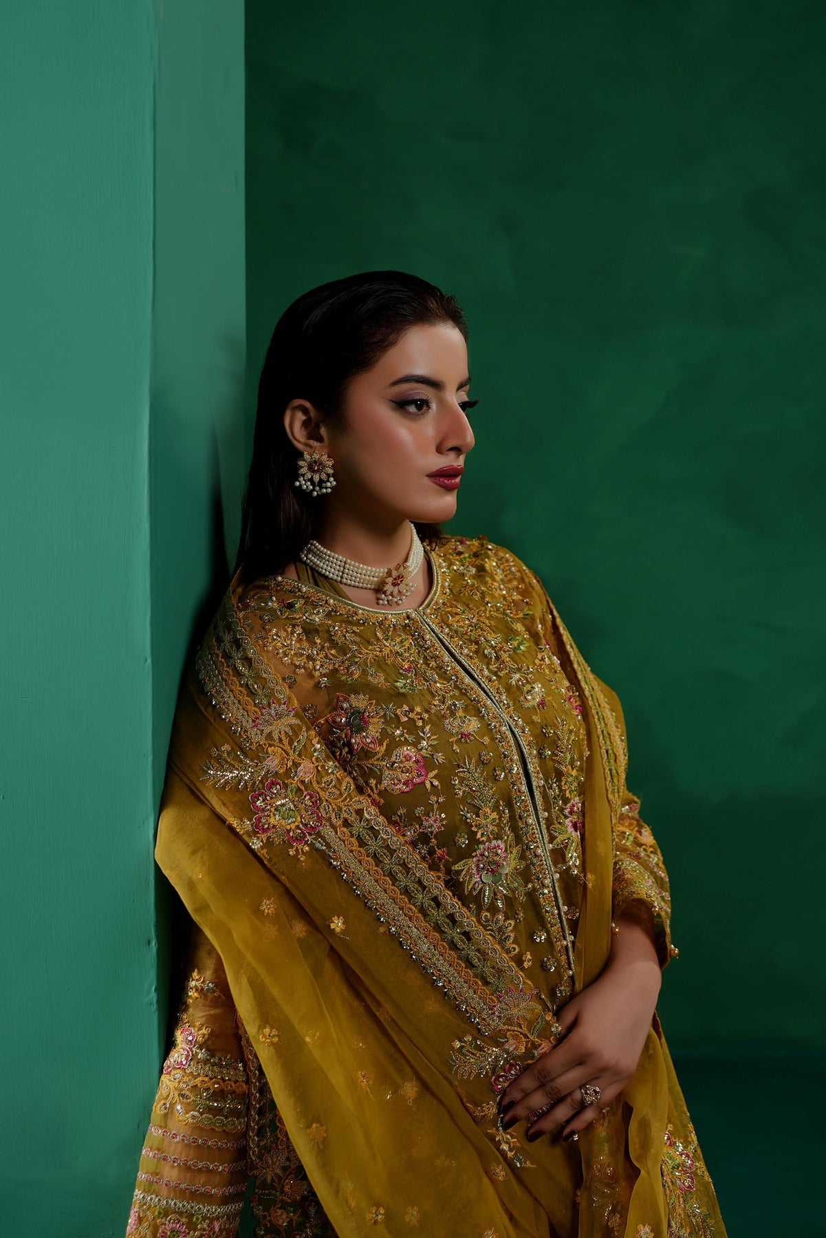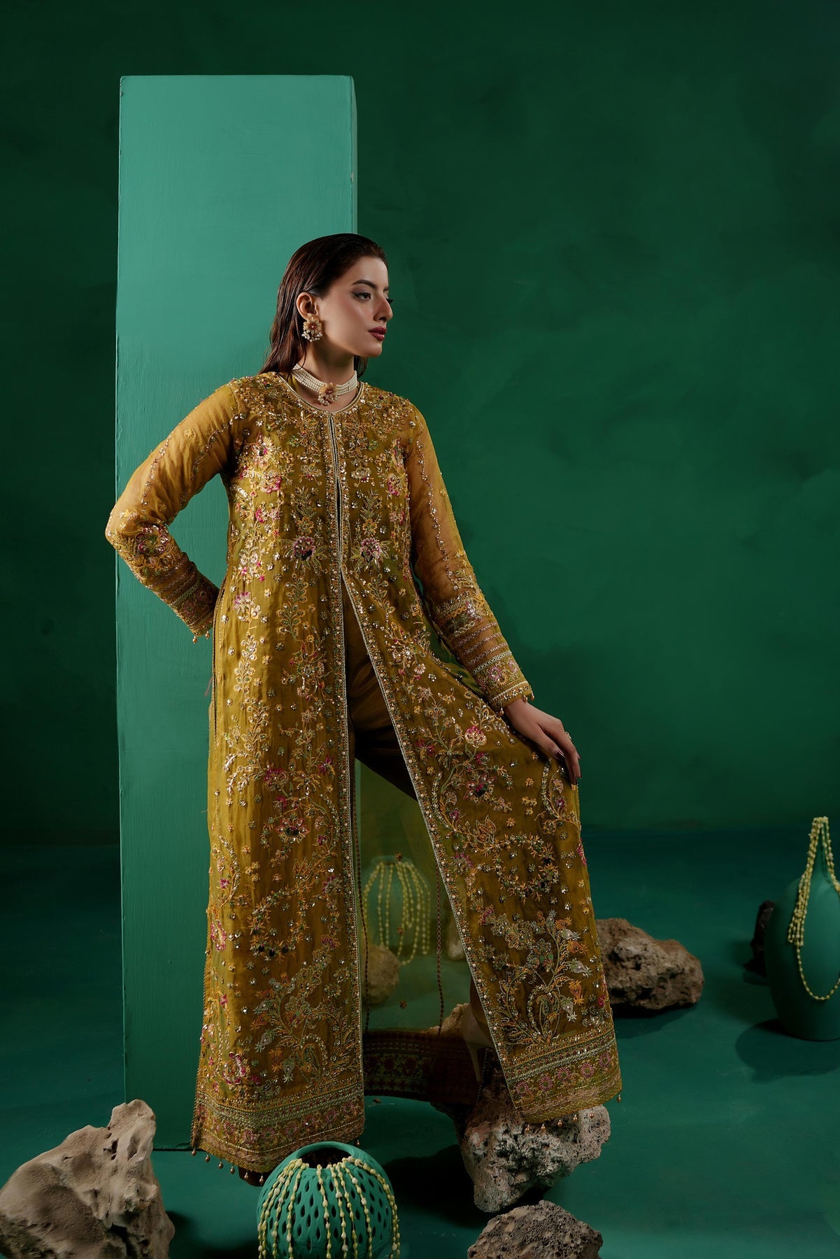 Given our Pakistani cultural background, we understand the significance of modesty. Therefore, we may make adjustments to certain design elements for modesty reasons. Examples of modifications include transforming low backs into traditionally styled regular backs, replacing drop shoulders with normal shoulders, concealing exposed stomachs, and attaching sleeves to sleeveless dresses.