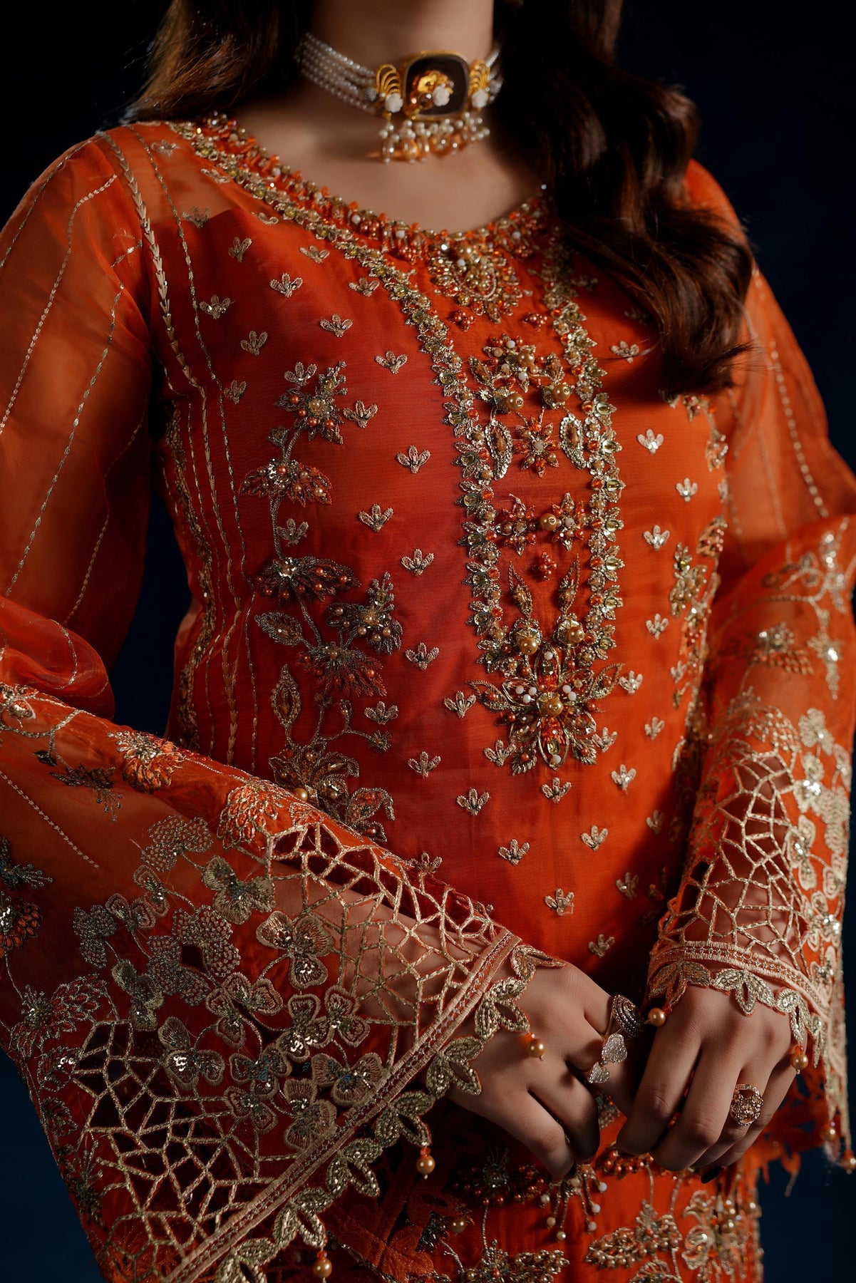 Embroidered Sleeves Organza