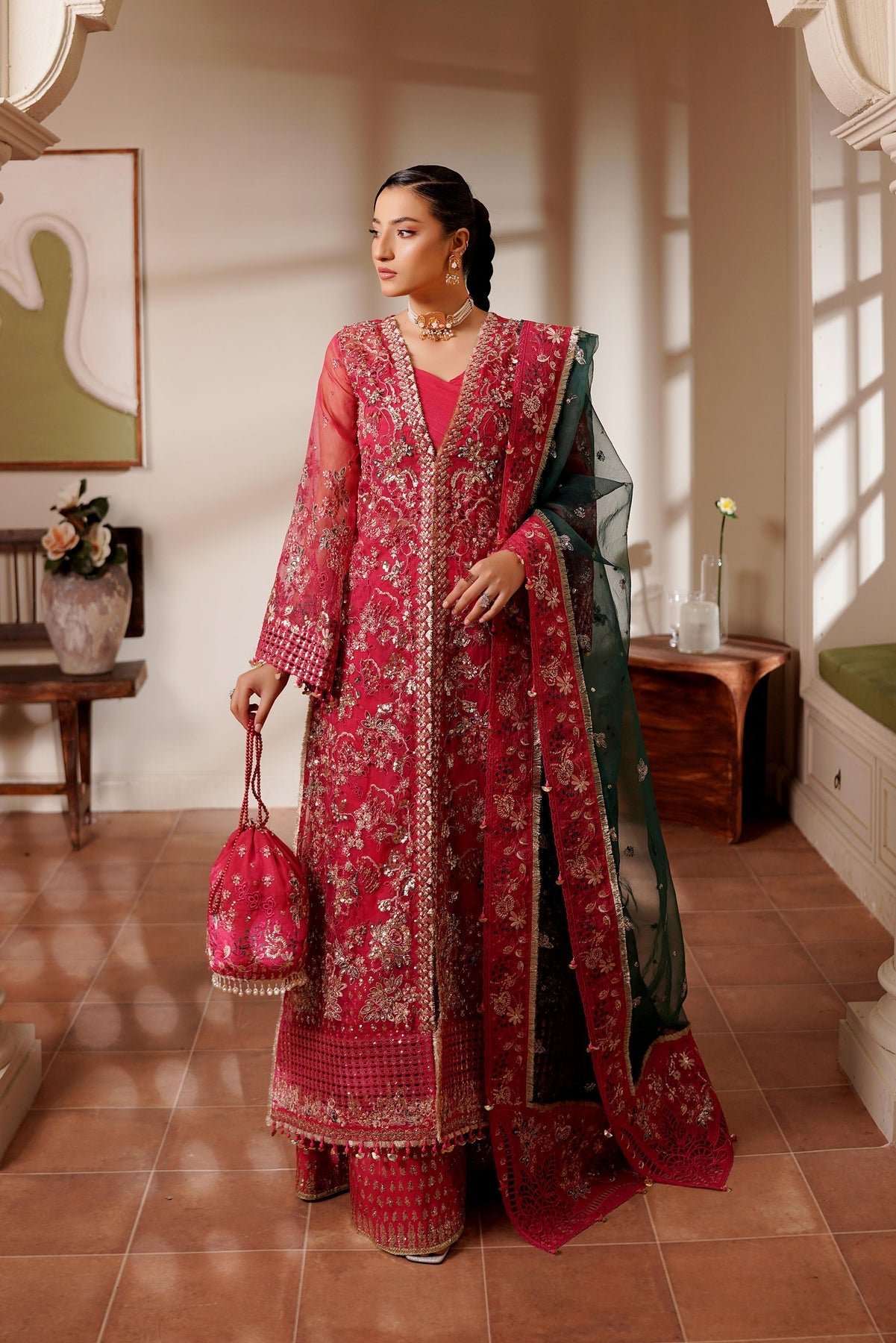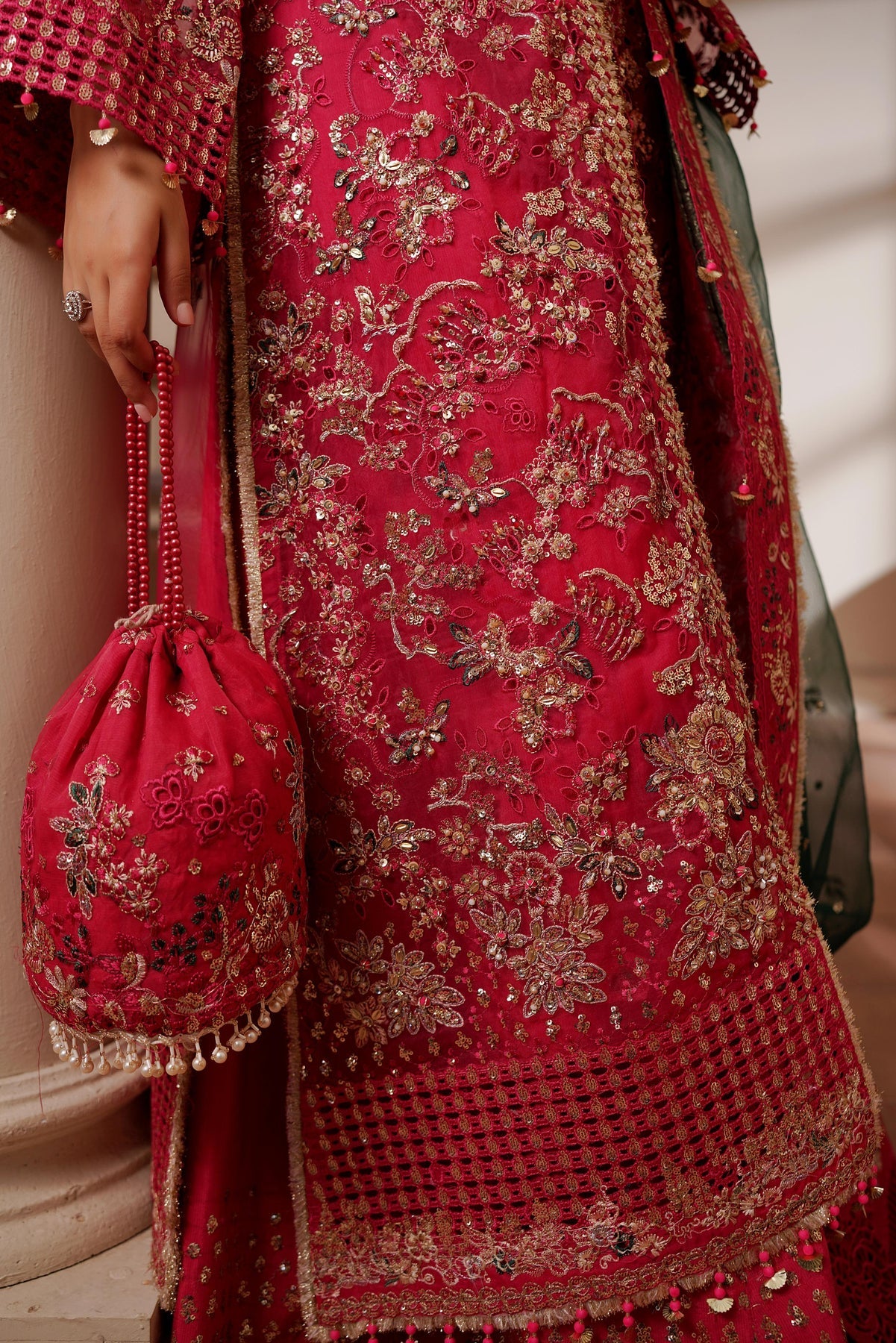 Given our Pakistani cultural background, we understand the significance of modesty. Therefore, we may make adjustments to certain design elements for modesty reasons. Examples of modifications include transforming low backs into traditionally styled regular backs, replacing drop shoulders with normal shoulders, concealing exposed stomachs, and attaching sleeves to sleeveless dresses.