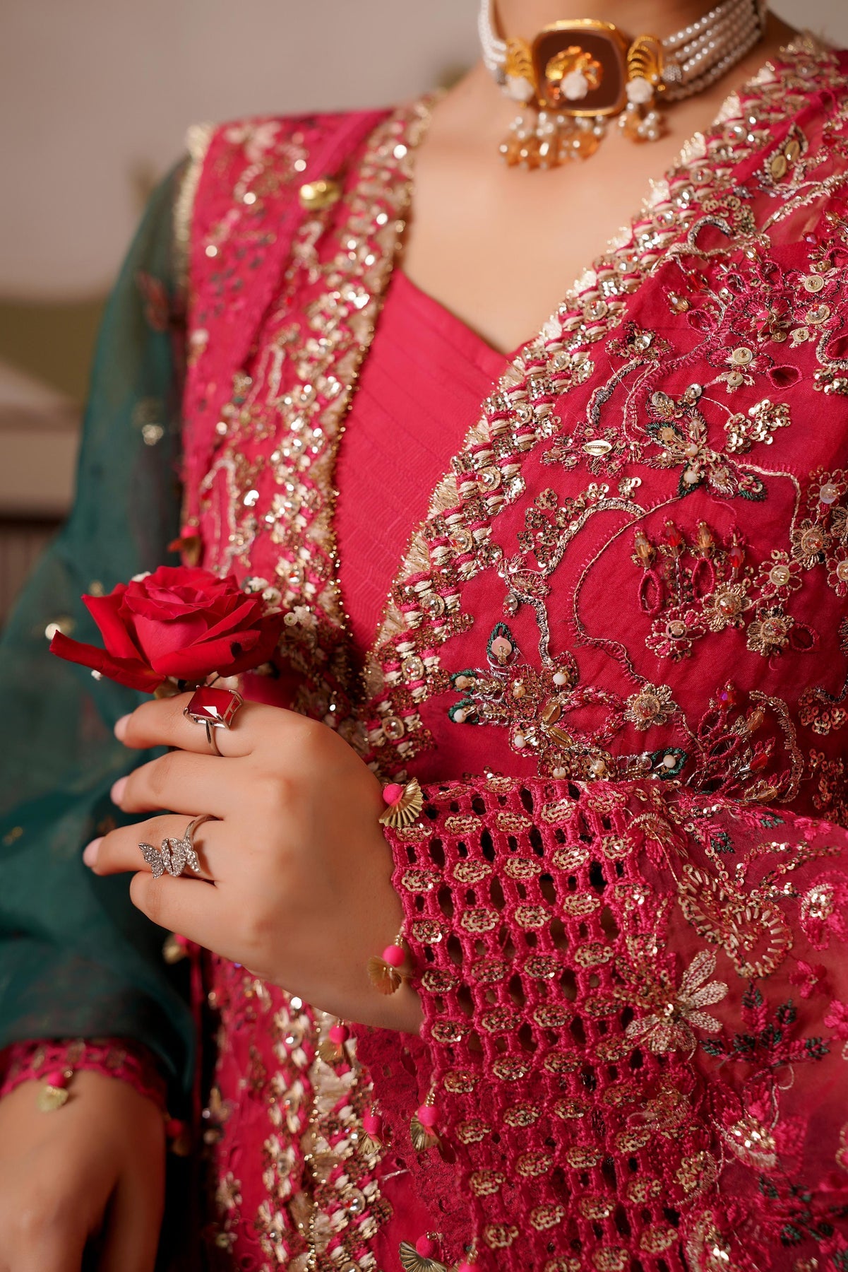 Embroidered Sleeves Organza With(Hand Embellishment)