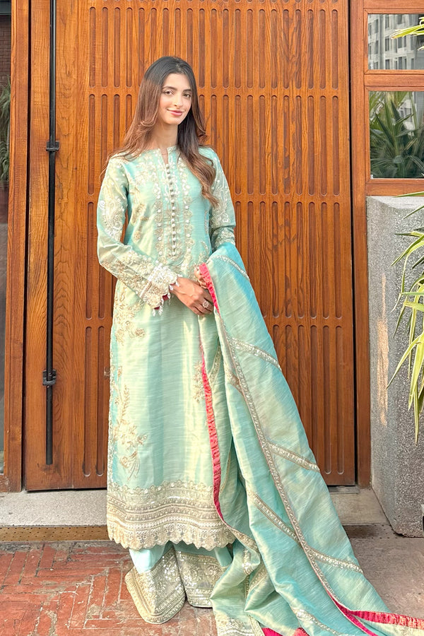 Given our Pakistani cultural background, we understand the significance of modesty. Therefore, we may make adjustments to certain design elements for modesty reasons. Examples of modifications include transforming low backs into traditionally styled regular backs, replacing drop shoulders with normal shoulders, concealing exposed stomachs, and attaching sleeves to sleeveless dresses.