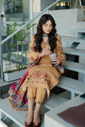 Illuminate your winter style with our 3-Piece Pret in Golden, a radiant blend of warmth and sophistication. Tailored from luxurious Khaddar for the shirt and bottom, and elevated with a rich Herringbone Shawl Dupatta, this ensemble embodies timeless elegance with a touch of opulence.