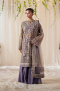 Shirt: Embroidered Front, Back Center Panel, Sleeevs Jaal (Net) 1.20 Yards Embroidered Front, Back Sides, Sleeves Jaal (Net) 1.50 Yards Embroidered Sleeves Boring Patti (Organza) 2.75 Yards Embroidered Front, Back Daman, Sleeves Patti (Organza) 3.15 Yards Fabric: Net + Organza Dupatta: Embroidered Dupatta (Net) With Dupatta Pallu Patti Patch (Organza) 2.75 Yards Fabric: Net Trouser: Trouser (Korean Silk) 4 Yards Fabric: Korean Silk Color: Lilac Design: Embroidered