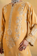 Radiate elegance with this stunning golden 3-piece velvet suit. The intricately embroidered velvet shirt, featuring a beautifully dyed back and detailed patti, is perfectly complemented by a luxurious embroidered dupatta and tailored trousers. This ensemble exudes opulence, making it an ideal choice for special occasions where you want to shine!