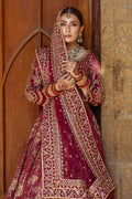 In a plum hue, Kandhari exudes the aura of modern sophistication with its unique color palette, round neckline & scalloped three quarter sleeves. The lehenga choli is bejeweled with heavy hand adda embellishments all over including naqshi, dabka, payal, heavy sitari work, cut dana, stone work & crystal hangings details & embroidery along with texture play, pattern work & delicate resham work on the bodice. The back of the choli is adorned with heavy handmade tassels. The main showstopper is the glistening lehenga with an all over pattern of heavy adda embellishments including crystals, mukeish, cut dana, sitari & playful texture work with thread embroidery along with intricate motifs finished with heavy layers of embellished and embroidered borders. The dupatta is adorned with hand adda embellishment patterns & embroidery spread a long with heavy embellished border finished with screen printed facing giving it a luxurious effect. Outfit comes with uniquely structured embellished & embroidered clutch.