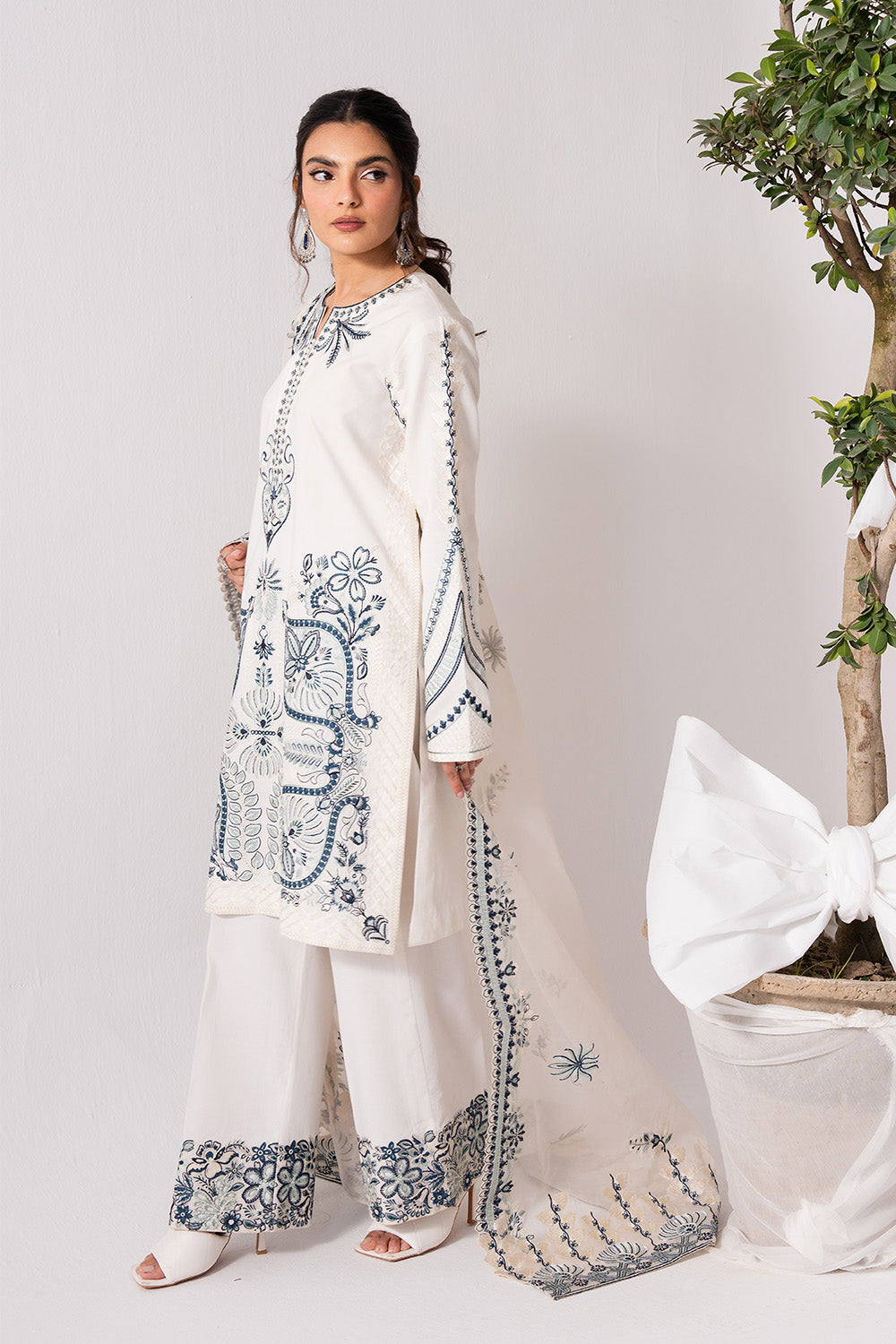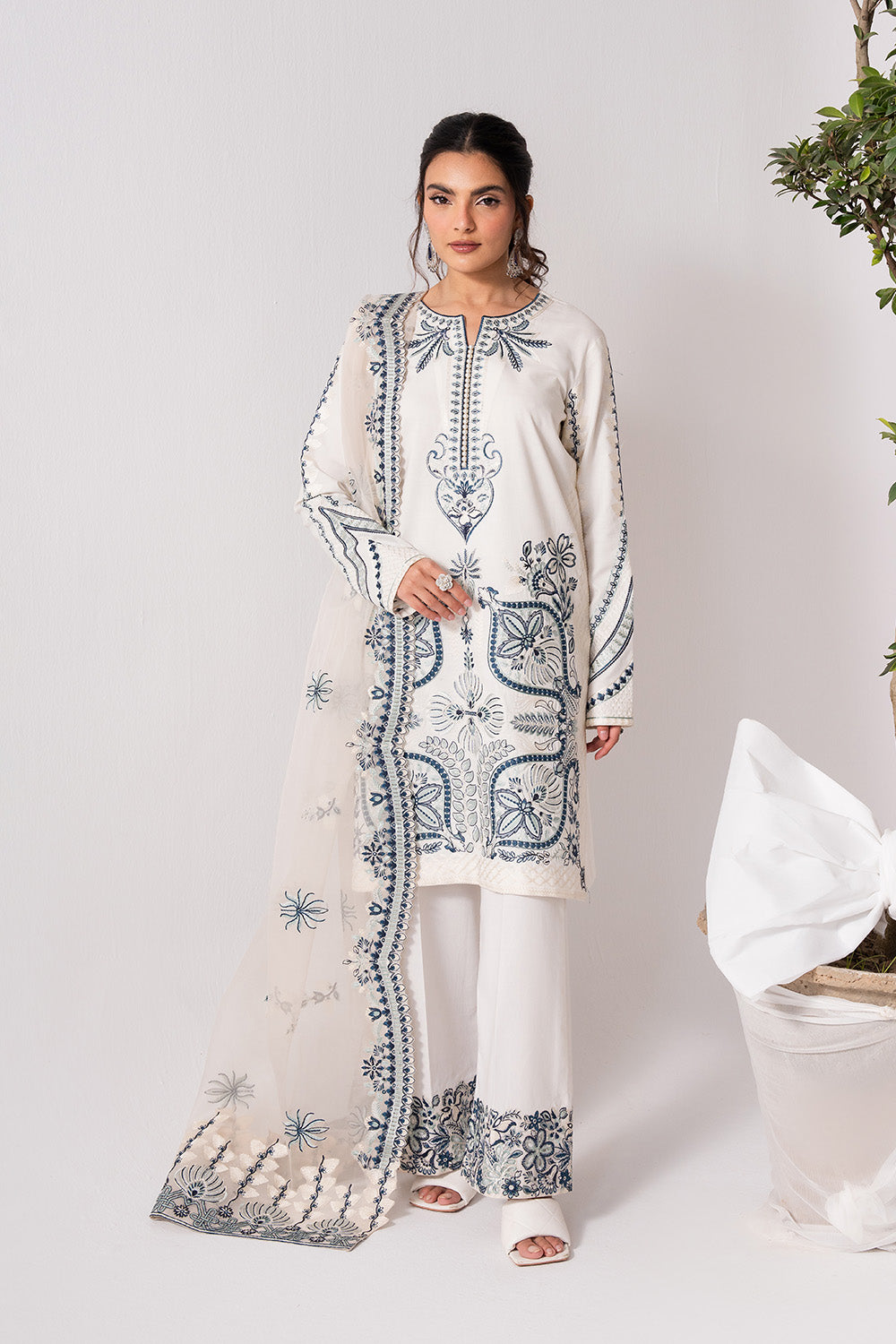 Exude timeless grace with this 3-piece pret set in White Coast. The lawn and organza shirt offers a delicate yet refined look, beautifully paired with a flowing organza dupatta. Complete with soft cotton trousers, this ensemble is a perfect blend of sophistication and charm.